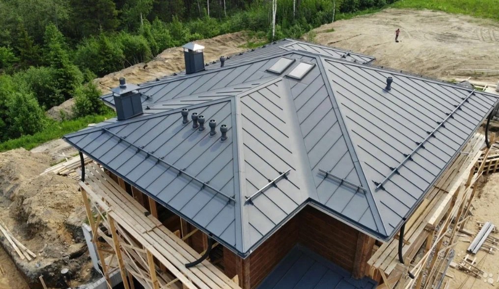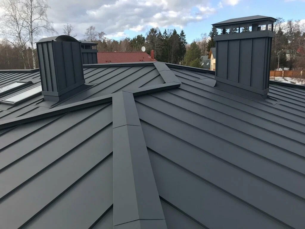 Профессиональный монтаж кровли кликфальц любой сложности с доборными деталями.